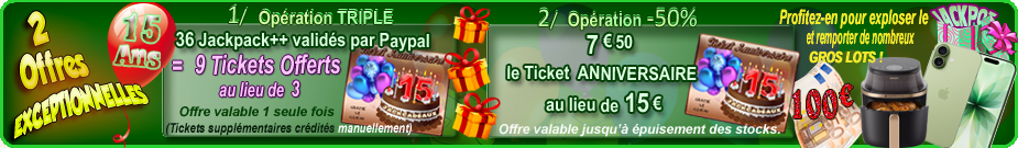 Bonsoir et merci à toute l'équipe pour la partie + offerte pour mon anniversaire, j'ai gagné 200 crédits !!!